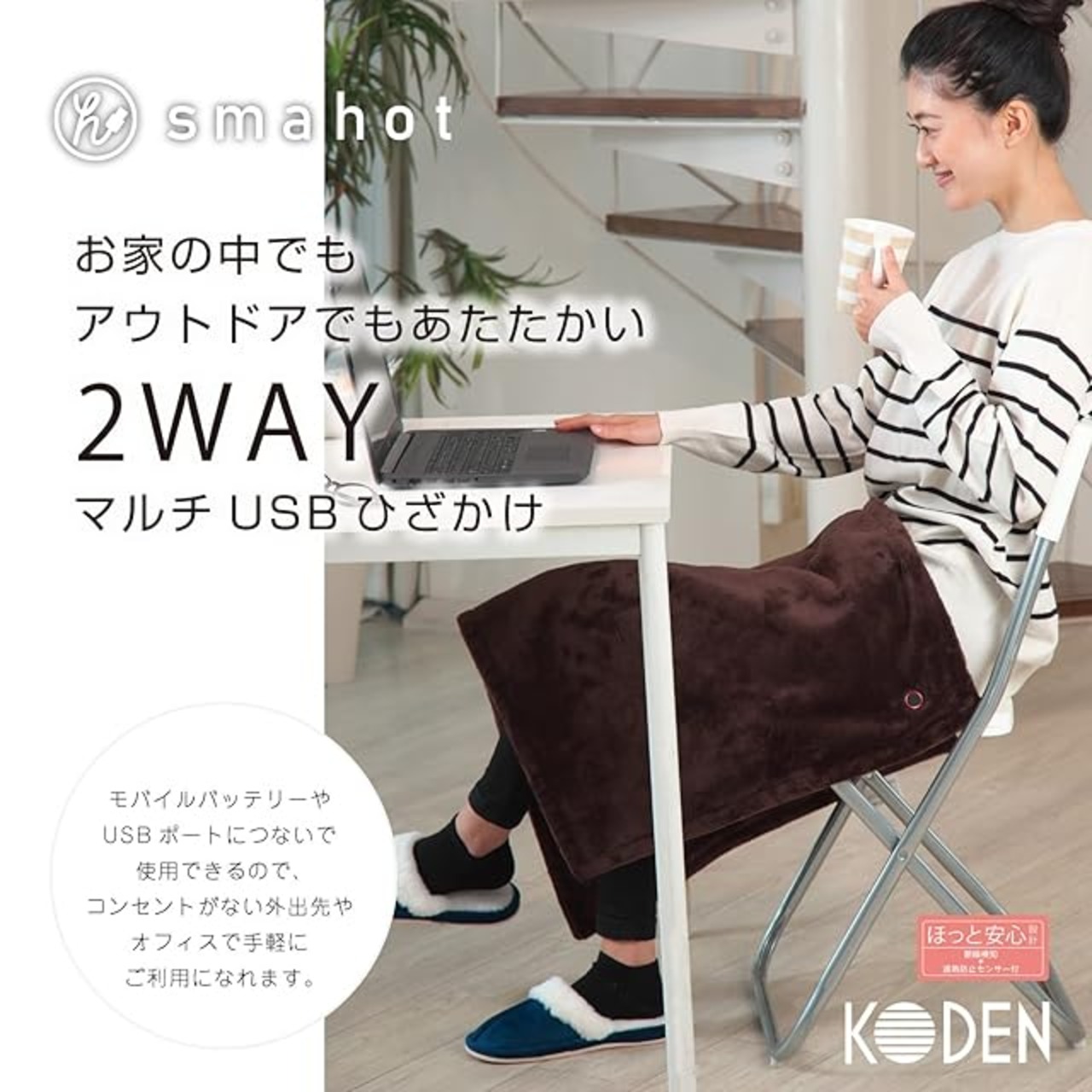 広電(KODEN) USB 電気ひざ掛け 90×60cm ブラウン フランネル 2WAYマルチ 速暖 コードレス 洗える アウトドア対応 CUN901G-B