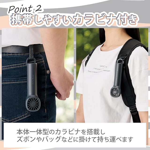 商品名:【2023年モデル】エレコム ハンディファン USB扇風機 スポットファン カラビナ付 風量調節可能 コンパクト ピンポイント送風 ダスティグレー FAN-U233GY