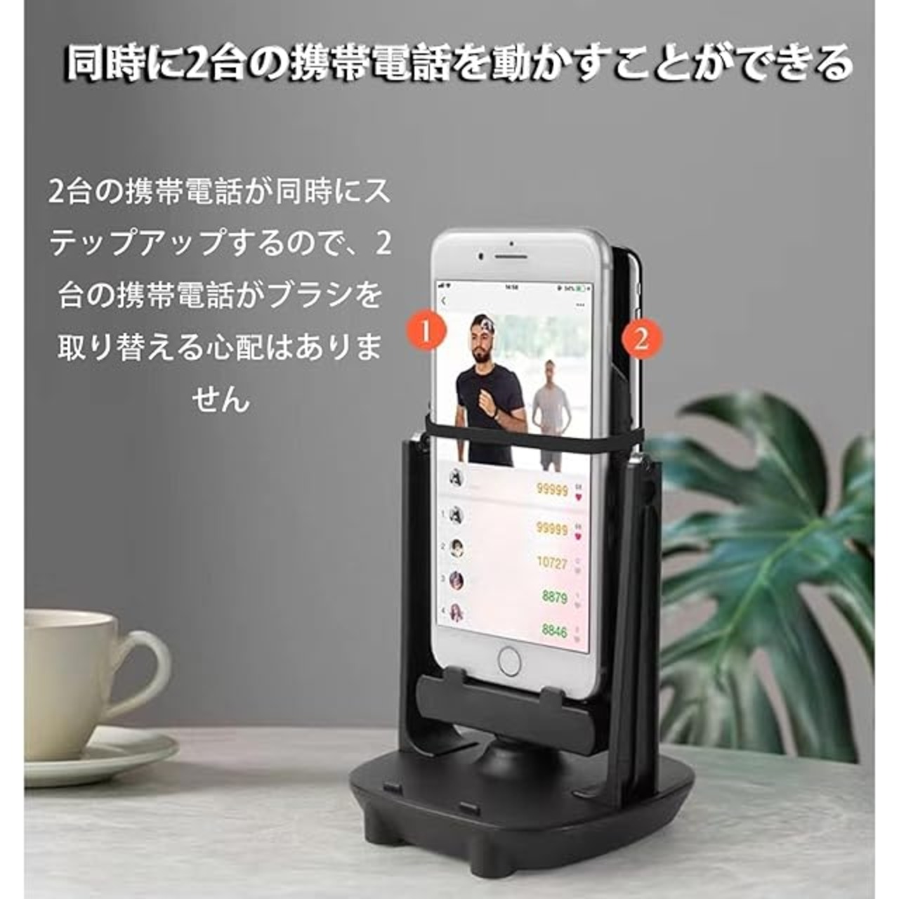【パッケージ内容】スタンド*2、スイング装置*1、台座*1、USB電源ケーブル*1、滑り止めパッド*4、日本語取扱説明書*1。本製品を正しく動作させるには、ベアリングがブラケットの対応するベアリング溝に正しく取り付けられている必要があります。ベアリングを1つだけ使用すると、製品が損傷し、正常に振動しなくなる可能性があります。<br><br><br>【楽に歩数を稼ぐ】いつでも冒険モード、いつでも歩数カウント、市場のほとんどのアプリに適した、Wechat Sports、Google Fit、Facebook、Twitter、Coke ONなどのアプリで歩数を増やせます寝てる間で歩数を稼げておりアメの確保や卵の孵化がだいぶ楽になります。<br><br><br>【静音強化】ステンレスベアリング採用の静音構造設計で静かでスムーズな高速回転を実現、騒音問題も解決してくれて、就寝時にも音を全く感じられず、オフィス、ベッドルーム、その他の場所で簡単に使用できます折れにくく、耐摩耗性がよくなり、シンプルなデザインで耐久性に優れていてます軽量で高級感も溢れます。<br><br><br>【対応機種】7.2インチ以下のスマホに対応、携帯電話2台同時使用可能iPhone,SONY,Galaxy,Pixel,HUAWEIなどの各シリーズのスマホ対応します。<br><br><br>【簡単なインストール】まず滑り止めマットをベースの上に置いて、スタンドをベースに挿入して、スイング装置を取り付けて、電源の挿入、携帯電話に入れて完成します本製品は、電源を接続し、手で押すことで装置を起働させることができます。注:振り子が始動直後に停止する場合は、まず、振動機構のベアリングが欠落、緩み、または不適切な位置にないか確認してください。5V2Aまたは2Aの充電アダプターをご使用ください。コンピューターのUSBポートやモバイル電源に接続して使用することはできません。<br><br><br>