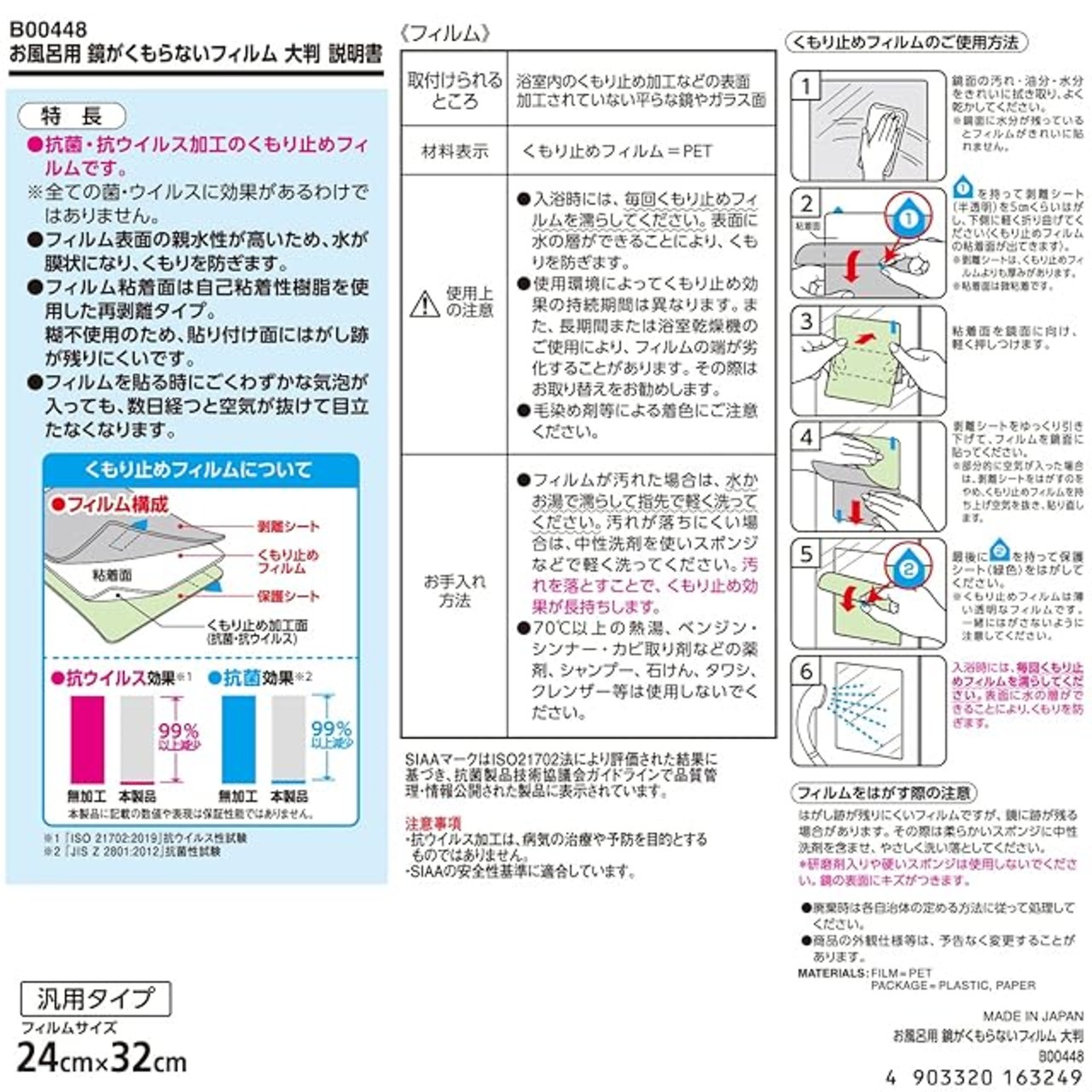 商品名:レック お風呂用 鏡がくもらないフィルム 大判 24×32cm B00448