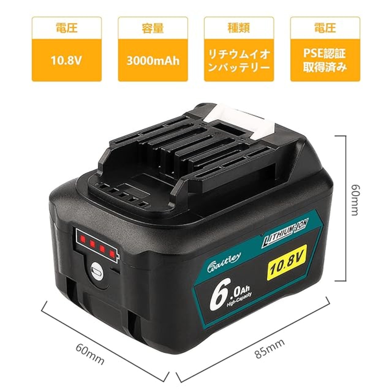 商品名:Waitley 2個セット マキタ10.8V バッテリー 互換 6.0Ah BL1015 BL1040 BL1060対応 6000mah 電動工具用バッテリー リチウムイオンバッテリ互換電池 マキタ10.8V 掃除機 対応 LED残量表示ランプ付き 大容量 耐久性が良い