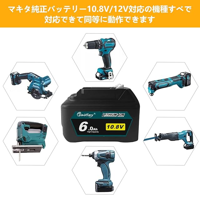 商品仕様】WTL1015, マキタ 10.8V 互換バッテリー、電圧:10.8V 容量:6.0Ah(6000mah)