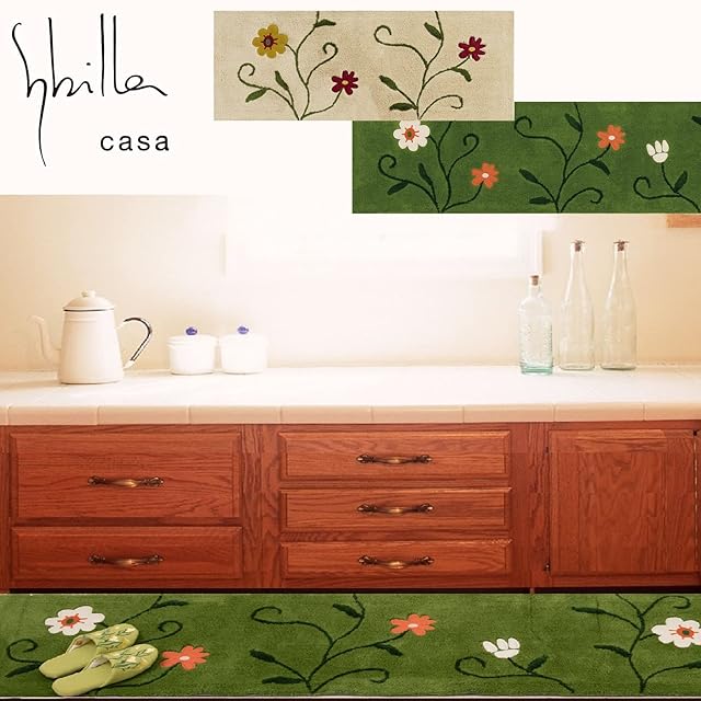 商品名:sybilla フラワーガーデン インテリアマット キッチンマット 約45× 240cm グリーン 36374