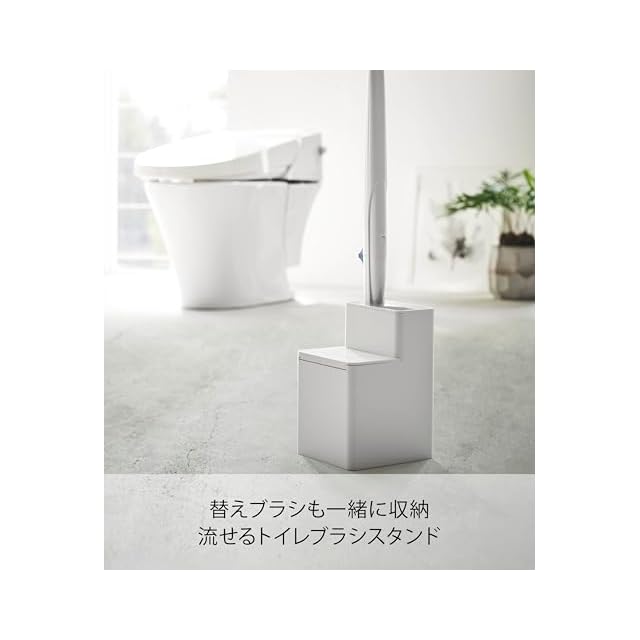山崎実業(Yamazaki) 替えブラシ 収納付き 流せるトイレブラシ スタンド ホワイト 約W11XD12XH17cm タワー tower トイレブラシケース トイレ掃除 5722