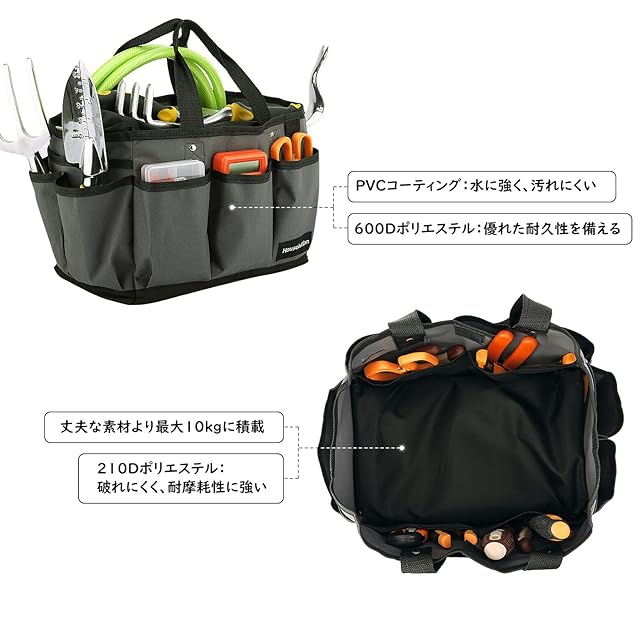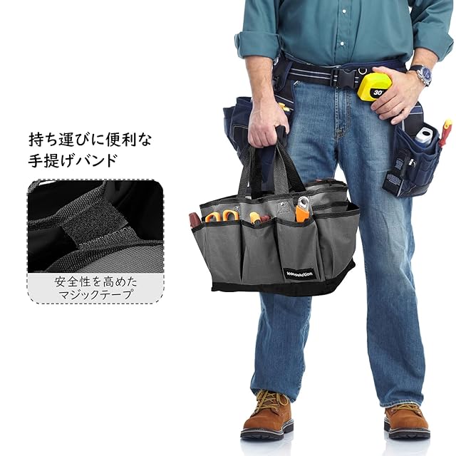 商品名:工具バッグ ツールバッグ Housolution 工具入れバッグ ツール収納バッグ 工具リュック 手提げバッグ 大容量 大口収納 ポリエステル製 撥水コーティング DIY/バイク整備/電工/大工/園芸工具収納 Gray