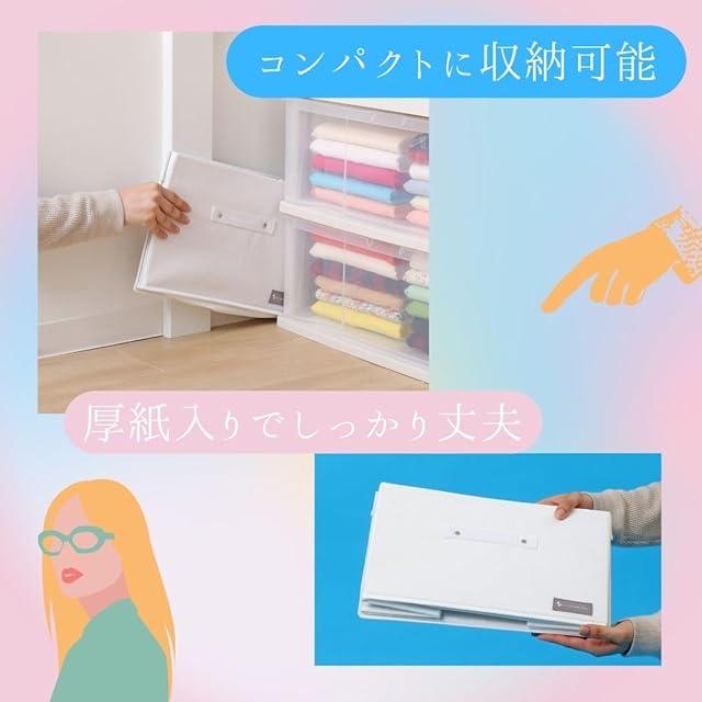 mayuyam アストロ 収納ボックス ホワイト フタ付き 収納ケース シンプル 不織布 厚紙入り 積み重ね カラーボックス 吊り下げ収納と併せて使える 860-13