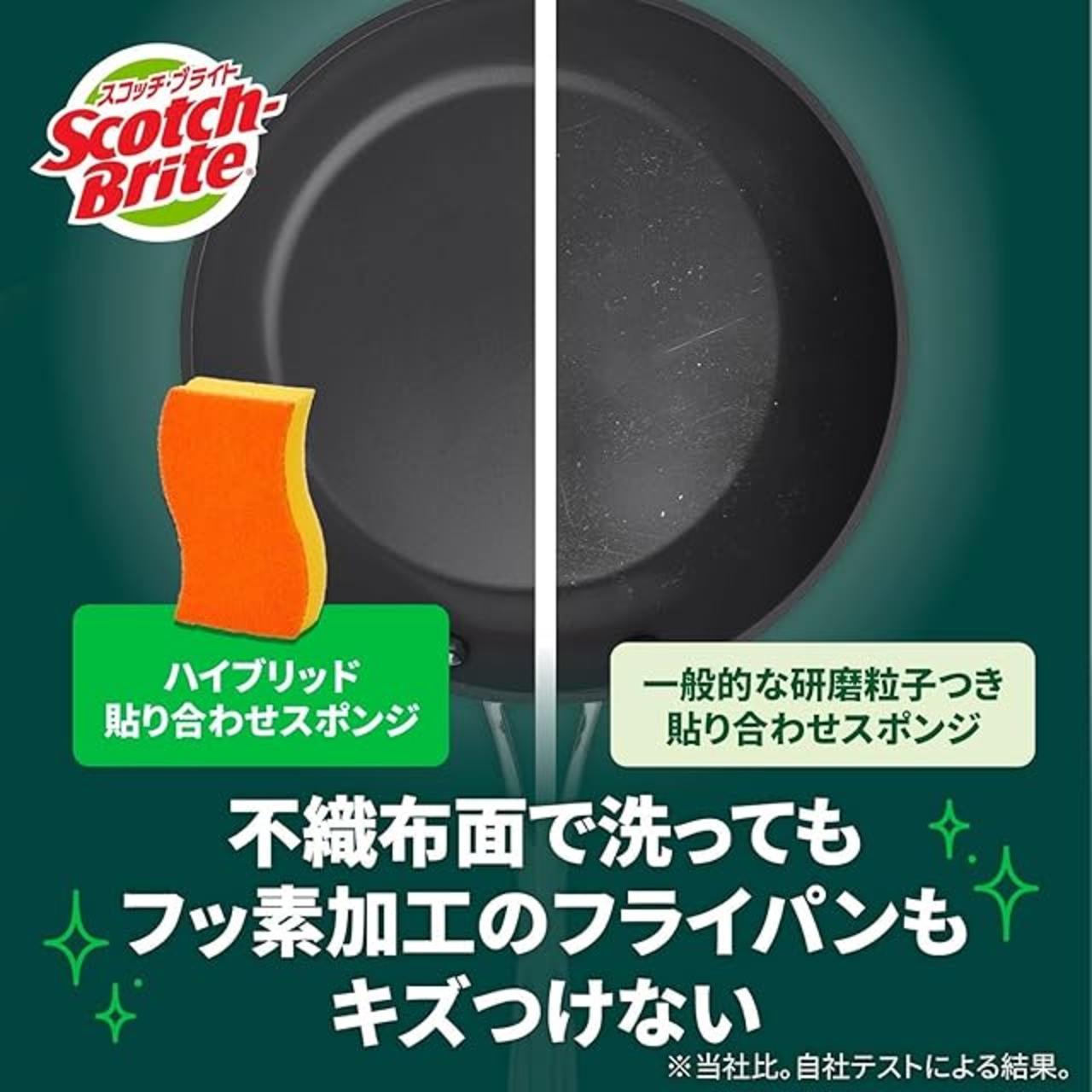 【パワフルなのに、キズつけない】フッ素加工のフライパン、ホーロー、ココット鍋などの調理器具にキズをつけないスポンジ。軽い力で汚れを落とせるので、お皿や茶碗にも安心してお使いいただけます。