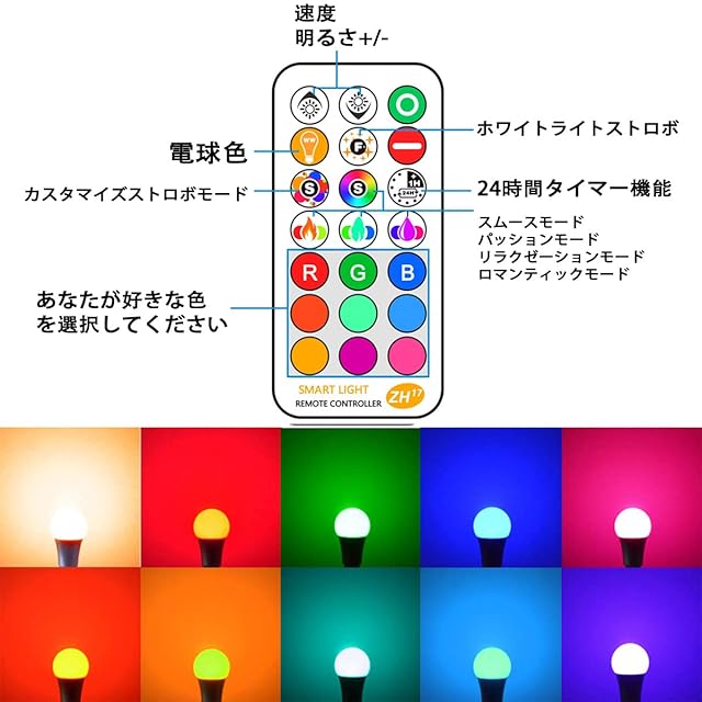 革新的同期:同期は革命的な革新であり、複数の電球(ファンランプ、ボビンランプ、シャンデリアなど)を一緒に使用する環境に非常に適している。電球の色の変化のリズムは、(フラッシュ、フラッシュ、スムーズ、情熱、リラックス、ロマンチック)モードを使用すると一貫して維持できます。注意:リモコン1つですべての電球を制御できます。
