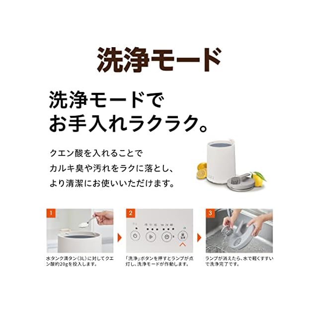 洗浄モード搭載。クエン酸を入れてボタンを押すだけのカンタンお手入れ。