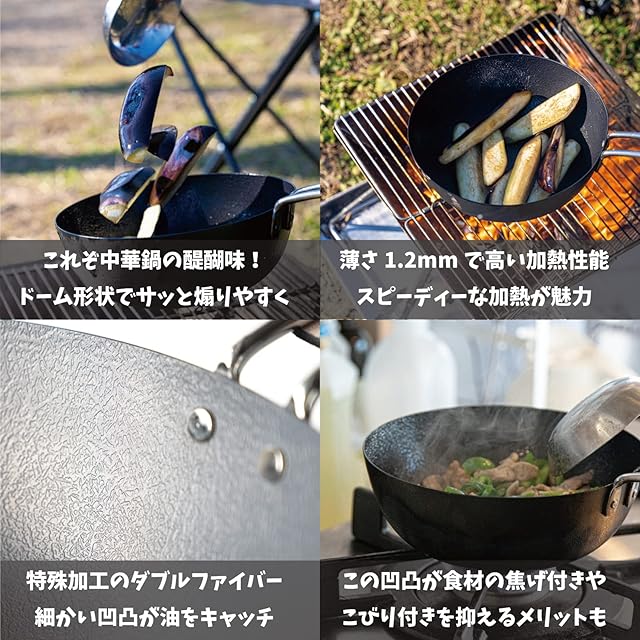 商品名:アーネスト 中華鍋 キャンプ 18cm 軽量 【日本製】 鉄製なのにくっつきにくい 焦げ付きにくい (ファイバーライン) 大手飲食店愛用ブランド ブラック A-77691 燕三条