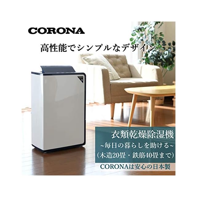 商品名:CORONA(コロナ) 衣類乾燥除湿機 【日本生産】 除湿量18L (木造20畳 / 鉄筋40畳まで) コンプレッサー式 ホワイト CD-H18A(W)