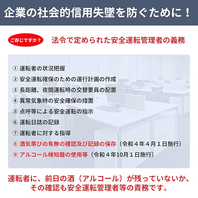 【注意事項】国家公安委員会が定めるアルコール検知器としてご使用いただけます。 本機の使用の有無(判断結果を含む)に関わらず、飲酒運転に関しては一切責任を負いません。