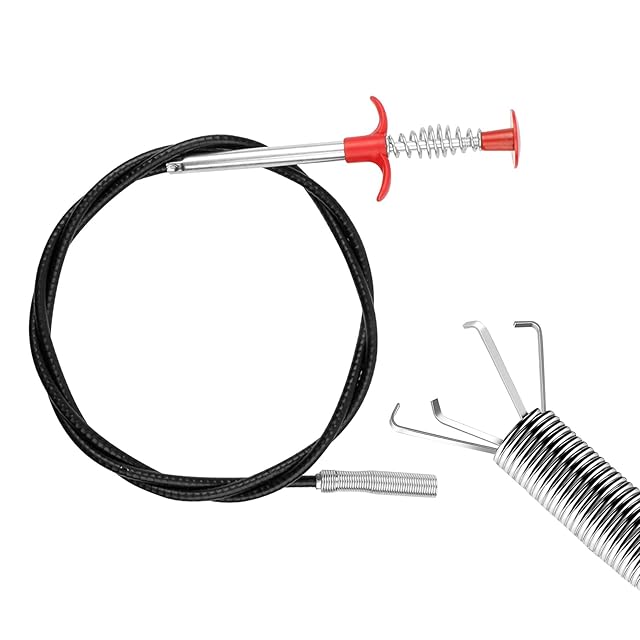 【細長い】パイプクリーナー 長さ160 cm、長くて細い構造で、狭い所でも心配なく清潔できます。柔軟で折り曲げ可能な巻き上げ式スプリング付きケーブル,下水管に簡単に挿入して破片を取り除き、排水管のブロックを解除できます。