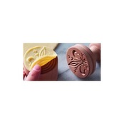 日本ではまだあまり知られていない円形パスタ「コルツェッティ」を作るための木製スタンプセット。伝統的で素朴な柄です。円柱型の「ベース台」は一方がパスタ生地を円形にくり抜く型になっており、反対側は渦巻きの模様がついています。ベース台の渦巻き模様の面を上にして、くり抜いたパスタを乗せてスタンプを押すとコルツェッティができあがります。両面に模様がついていることでソースのからみがとてもよくなります。