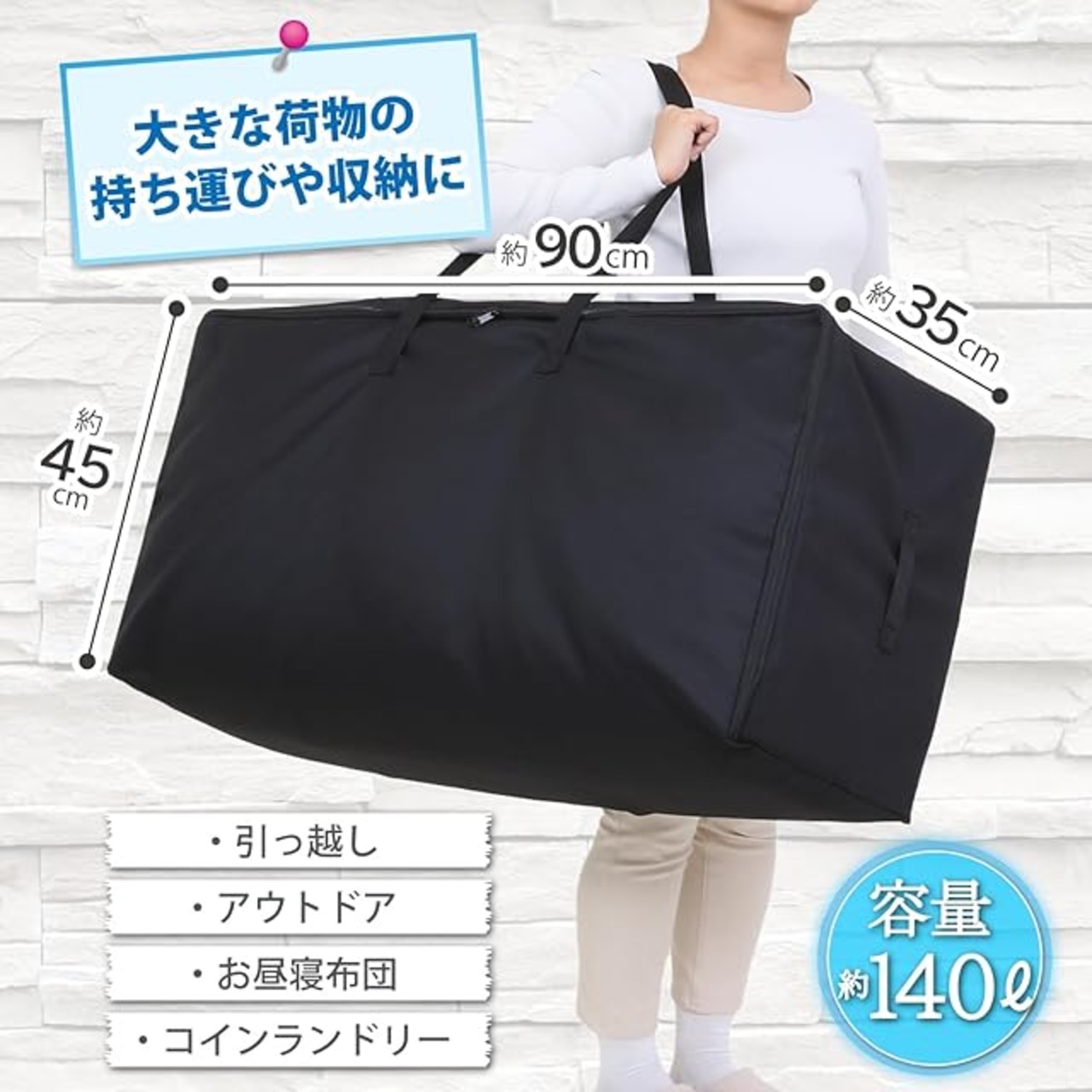 商品名:アストロ 布団収納バッグ ブラック ボストンバッグ 大容量 約140L 布団一式 収納袋 引っ越し ランドリーバッグ 611-45