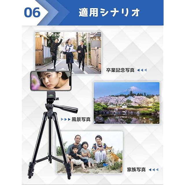 【品質と充実の付属品】当社は6年以上の三脚製造経験を持ち、高品質な製品を提供しています。万が一製品に問題が発生した場合でも、迅速かつ誠実に対応いたします。パッケージ内容は、三脚本体(リモコン付き)×1、収納袋×1、スマホ用ホルダー×1、日本語取扱説明書×1で、すぐに使い始められます。さらに、カスタマーサポートも充実しており、安心してご利用いただけます。高品質な素材と製造プロセスにより、長期間にわたってご愛用いただける製品です。