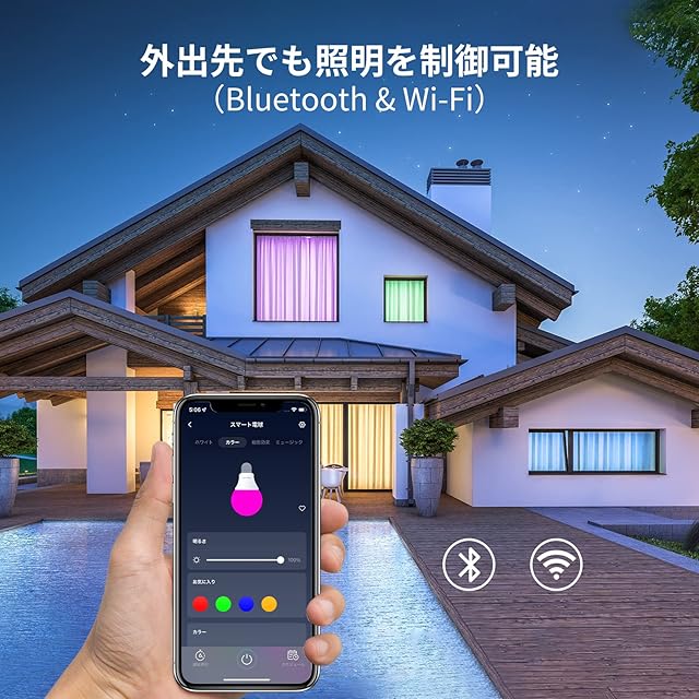 【外出先でも照明を制御可能】外出先からスマホで照明状態が確認可能。電球のON・OFFや調光・調色も操作できます。ライトの消し忘れなどで電気の無駄遣いを防ぎ、より効率的な省エネ対策を実現可能。旅行時などの防犯対策にもなります。