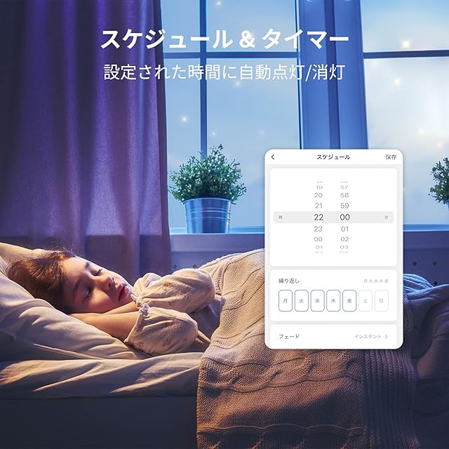 【スケジュール機能付き】SwitchBot スマート電球はアプリで就寝時間に点滅するように設定可能。時間になったら点滅して、ご注意を促してくれ、夜更かし防止に役立ちます。消灯時間を設定しておけば自動消灯できます。