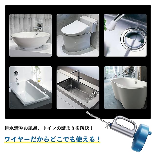 【業者要らず】業者に頼らずに水回りのトラブルを解消できるワイヤー式パイプクリーナー。液体タイプやラバーカップで解消できない詰まりや汚れも、ワイヤーで取り除くことが可能です。