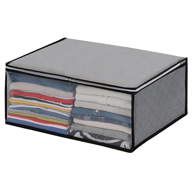 【商品仕様】:サイズ/約幅48×奥行35×高さ20cm、カラー/グレー、内容/1枚、収納目安/セーターやトレーナーなら約5~7枚・長袖シャツなら約20~25枚、材質/ポリプロピレン・活性炭・ポリエチレン