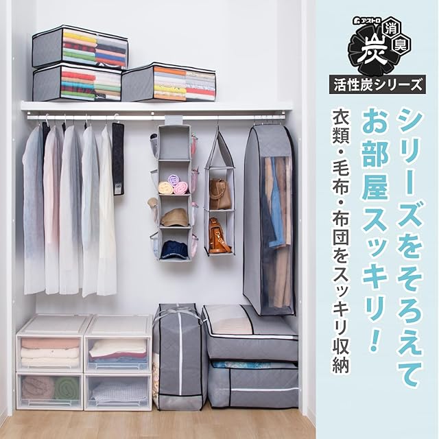 商品名:アストロ 活性炭消臭 衣類収納ケース グレー 活性炭のチカラで消臭保管 通気性の良い不織布製 ほこりや汚れから中身をガード 透明窓付き 蓋付き 積み重ね 衣類 洋服 収納袋 収納ボックス 衣装ケース クローゼット 押し入れ 171-71