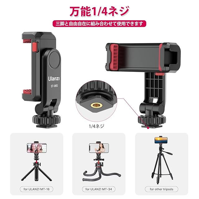 新版 Ulanzi カメラスマホモニターマウント 360°回転 角度調整 スマホホルダー アクセサリーシュー付き 垂直ブラケット 1/4ネジ スマートフォン三脚 iPhone/Android/カメラ/一眼レフ/ミラーレス/a7iii/ZV-E10/三脚/自撮り棒