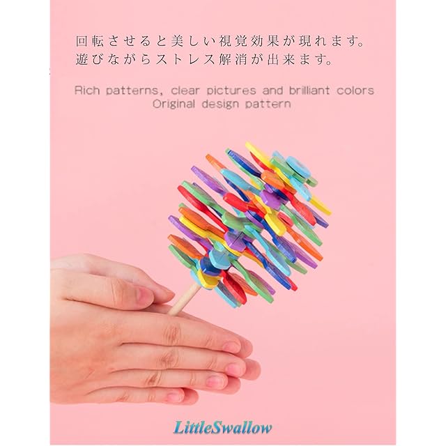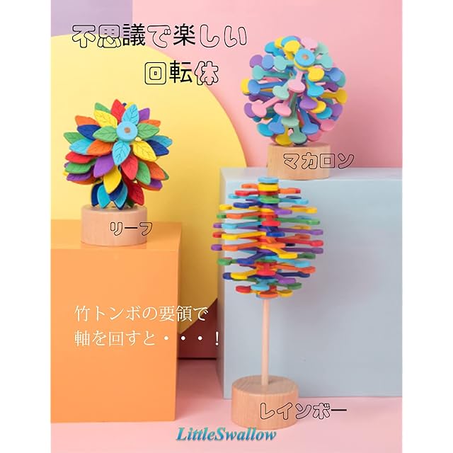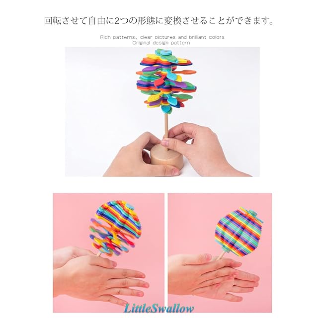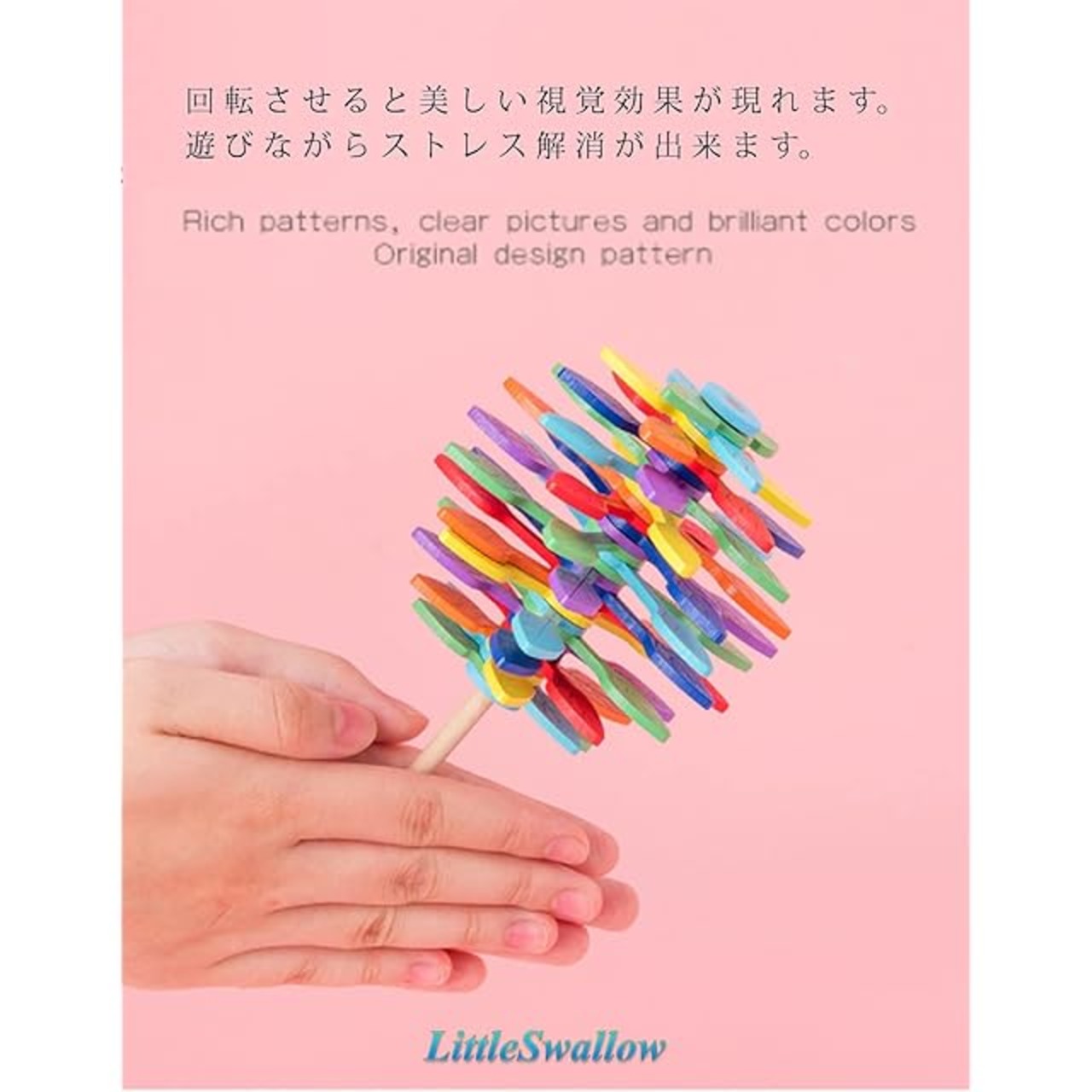 商品名:[リトルスワロー] 木製 おもちゃ 暇つぶし ストレス解消 グッズ 手動 回転 玩具 置物 インテリア (レインボー)