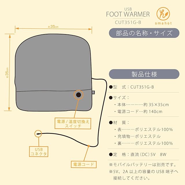 【高い安全性のUSB暖房】当社は電気暖房家電メーカーとして、高品質で安全・安心なものづくりを行っております。そのノウハウを生かした「smahot」シリーズは、ヒーターの断線検知と過熱防止センサーの搭載など、当社独自の設計と厳しい試験により安全性を追求しています。