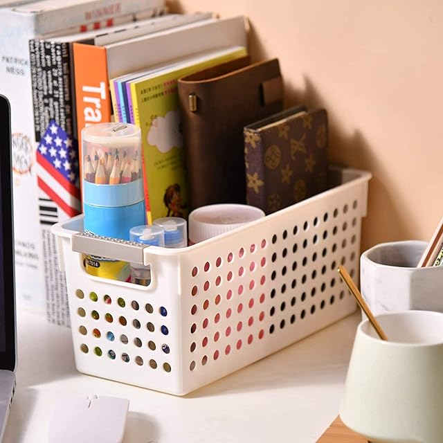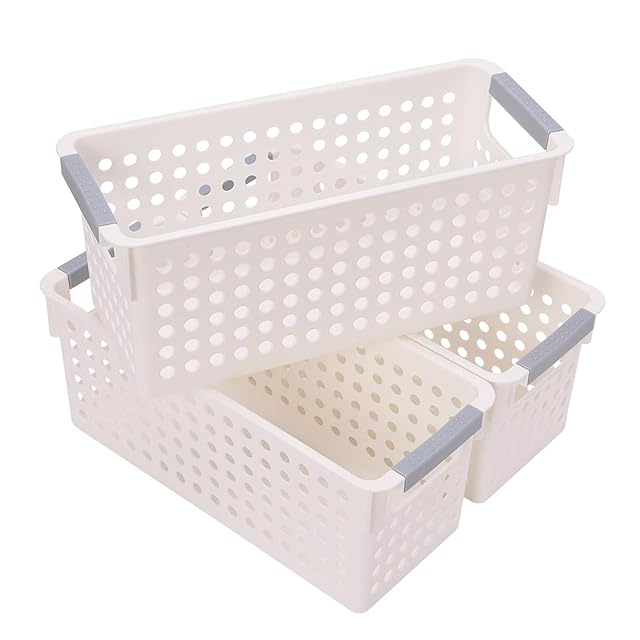 JAKAGO 3個セット 収納バスケット 収納ボックス プラスチック ( 収納ケース 小物収納 化粧品 キッチン 調味料 )ホワイト