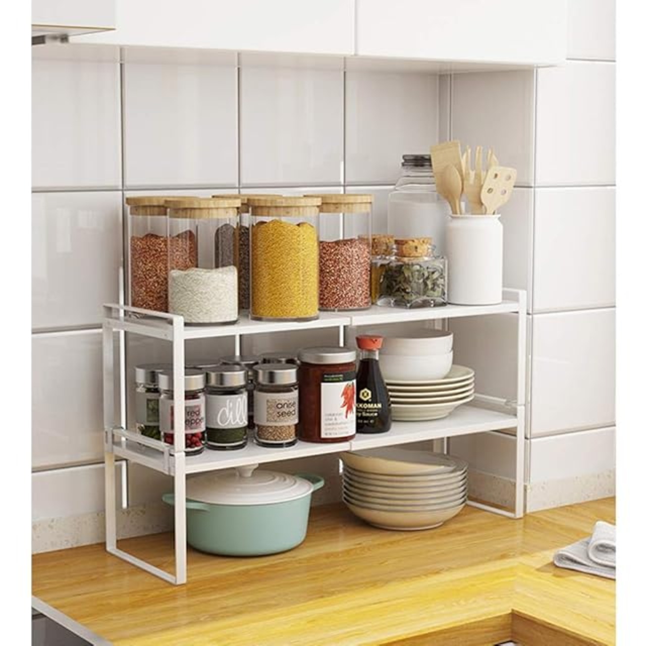【スタッキング可能】積み重ね可能のキッチンラックは、お好きな形に調整できるので、多くのスペースに適用できます。調味料、スパイス類、小物など一括収納できます。