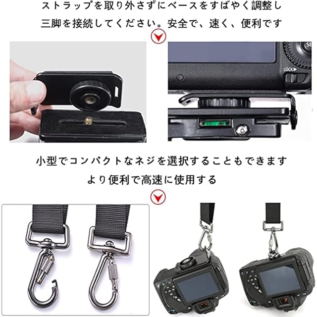 このカメラストラップにより、2台の一眼レフカメラを同時に持ち運ぶことができ、最大耐荷重は50kgです。 2つのクイックリリースプレート、2つの標準1/4ネジ、2つの安全テザーが装備されています。 必要に応じてマッチングを選択できます。 クイックリリースプレートは、三脚またはパン/チルトに直接取り付けることができます。 ハードウェア障害によるカメラのクラッシュに対する二次的な保護を提供するために、安全テザーをカメラストラップと一緒に使用することを強くお勧めします。