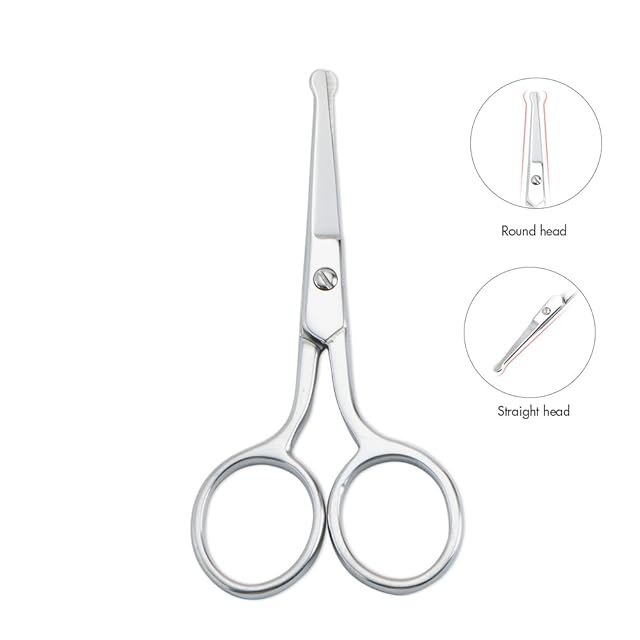 LIVINGO 鼻毛はさみ 美容丸いセーフティはさみ プレミアムステンレス鋼甘皮ハサミ 眉毛 まつげ あごひげ 顔の毛 乾燥肌のカット用