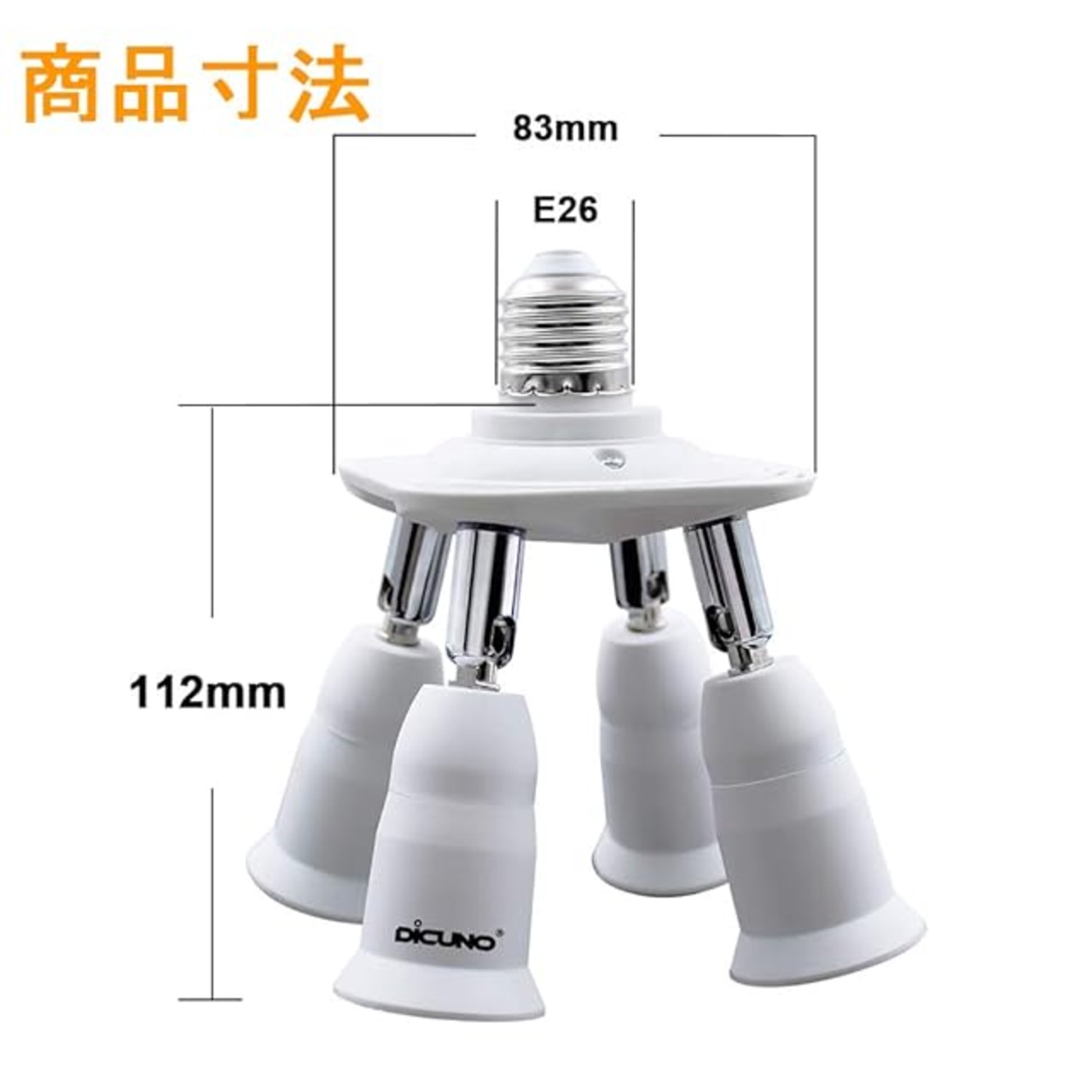 商品名:DiCUNO LED電球専用 4分岐ソケット E26口金対応 照射角度可調 延長ソケット