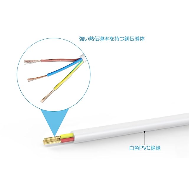 【安定性】中身は銅芯線のため、導電性がよくて低発熱、利用安心