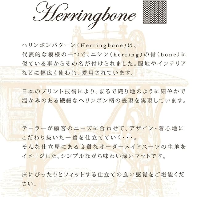 センコー(Senko) B.B.collection ヘリンボン 4 キッチンマット 約50× 210cm グレー 抗菌 防臭 薄手 床暖房対応 日本製 38533