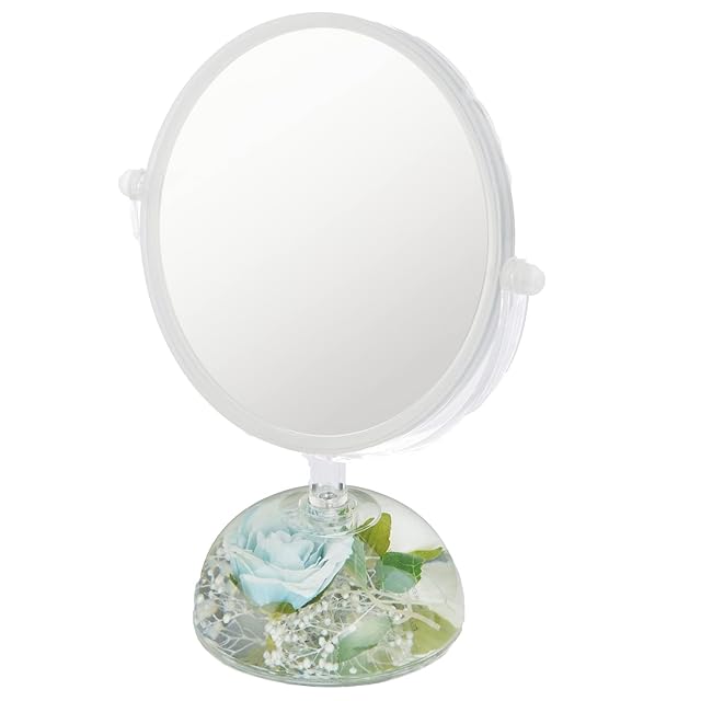 商品名:パシフィックGLD スタンドミラー アクリル水中花 両面ミラー ホワイト&ブルー W18.5×D10×H23cm 58802
