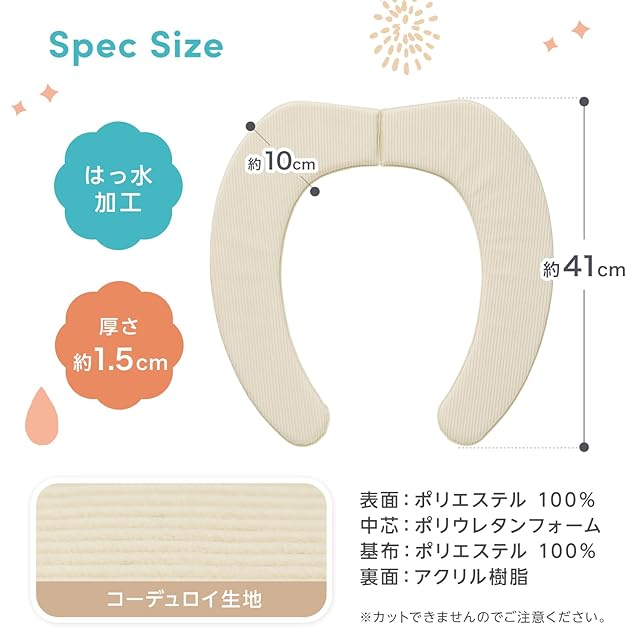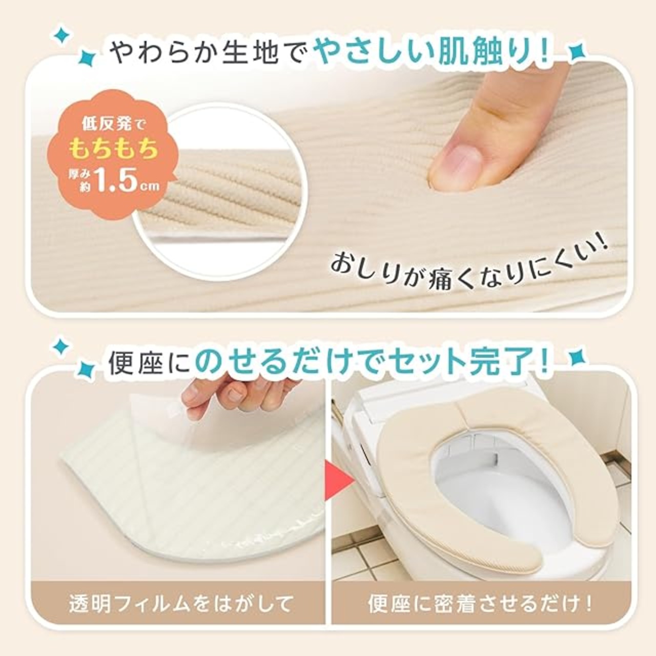 商品名:レック(LEC) サッと拭ける はっ水加工 吸着べんざシート コーデュロイ ベージュ (低反発クッション)/ 貼るだけ/洗濯OK/どの便座でも対応可