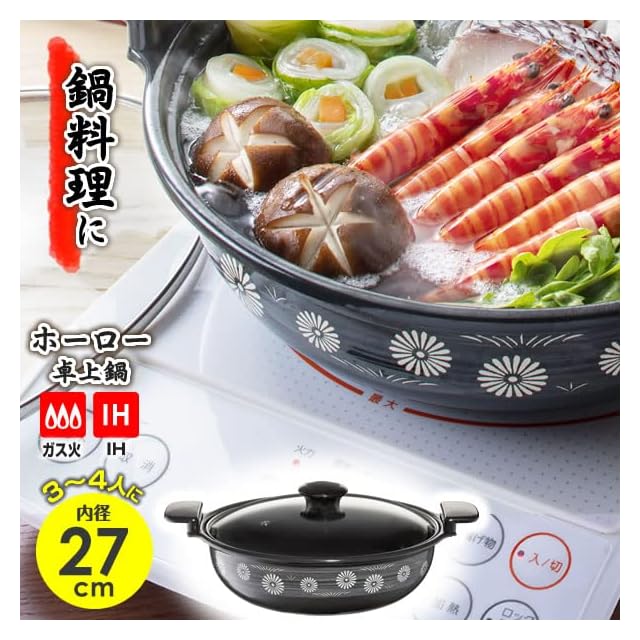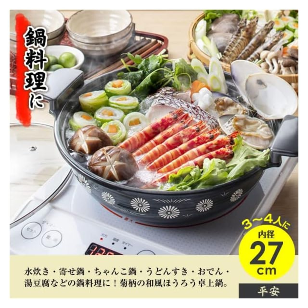 商品名:高木金属工業(Takagi Metal) 高木金属 両手鍋 洗いやすい 卓上鍋 ホーロー IH対応 27cm あじわい鍋 土鍋風 平安 HA-H27N