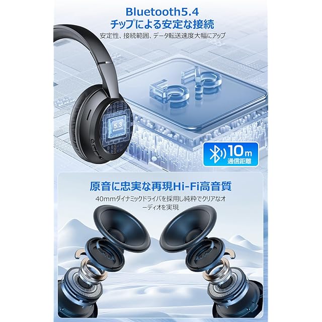 【.co.jp限定】 業界初Bluetooth5.4 ヘッドホン bluetooth ワイヤレスヘッドホン ANCノイズキャンセリング 有線 無線 両用 最大35時間再生 マイク内蔵 ハンズフリー通話 マルチポイント対応 快適装着 軽量 オーバーイヤーヘッドホン 音漏れ防止 3種EQモード 折り畳み可能 SBC/AAC対応 3.5mmケーブル付き ブラック
