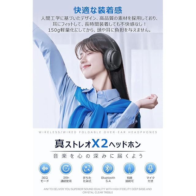商品名:【.co.jp限定】 業界初Bluetooth5.4 ヘッドホン bluetooth ワイヤレスヘッドホン ANCノイズキャンセリング 有線 無線 両用 最大35時間再生 マイク内蔵 ハンズフリー通話 マルチポイント対応 快適装着 軽量 オーバーイヤーヘッドホン 音漏れ防止 3種EQモード 折り畳み可能 SBC/AAC対応 3.5mmケーブル付き ブラック