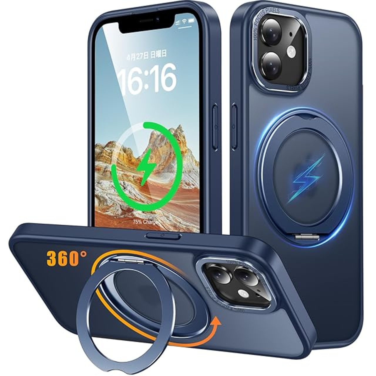 iPhone 11 用 ケース Magsafe対応 ワイヤレス充電 360°回転スタンド 縦横両対応 Gunwon スマホケース iphone11 用 米軍規格 耐衝撃 半透明 マット感 マグセーフ 防指紋 リング マグネット搭載 アイフォン11 用 カバー 「ブルー」