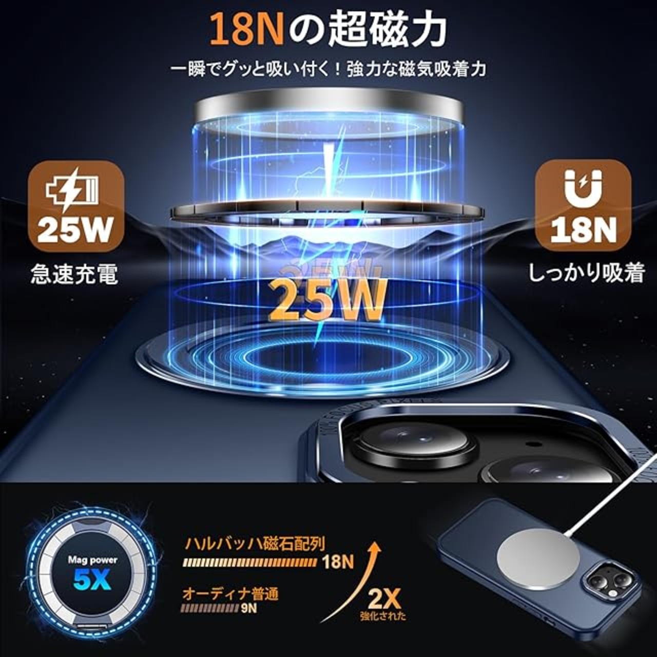 【MagSafe対応・磁力アップグレード】:強力なN52磁石を搭載しており、磁石吸着力は従来より10倍高め、ケースを装着したまま高速ワイヤレス充電が可能です、充電時の熱を周囲に発散して。Magsafe充電がかつてないほど簡単にできます!強い磁力により車運転中の激しい振動でもMagsafe車載ホルダーから外れることなく、市販のあらゆるMagsafeアクセサリーに簡単対応!いくら振っても落ちないので、充電しながらゲームをやっても問題なし!【 iphone 14 Plus 用 ケース アイフォン14Plus 用 ケース アイホン14プラス用ケース】