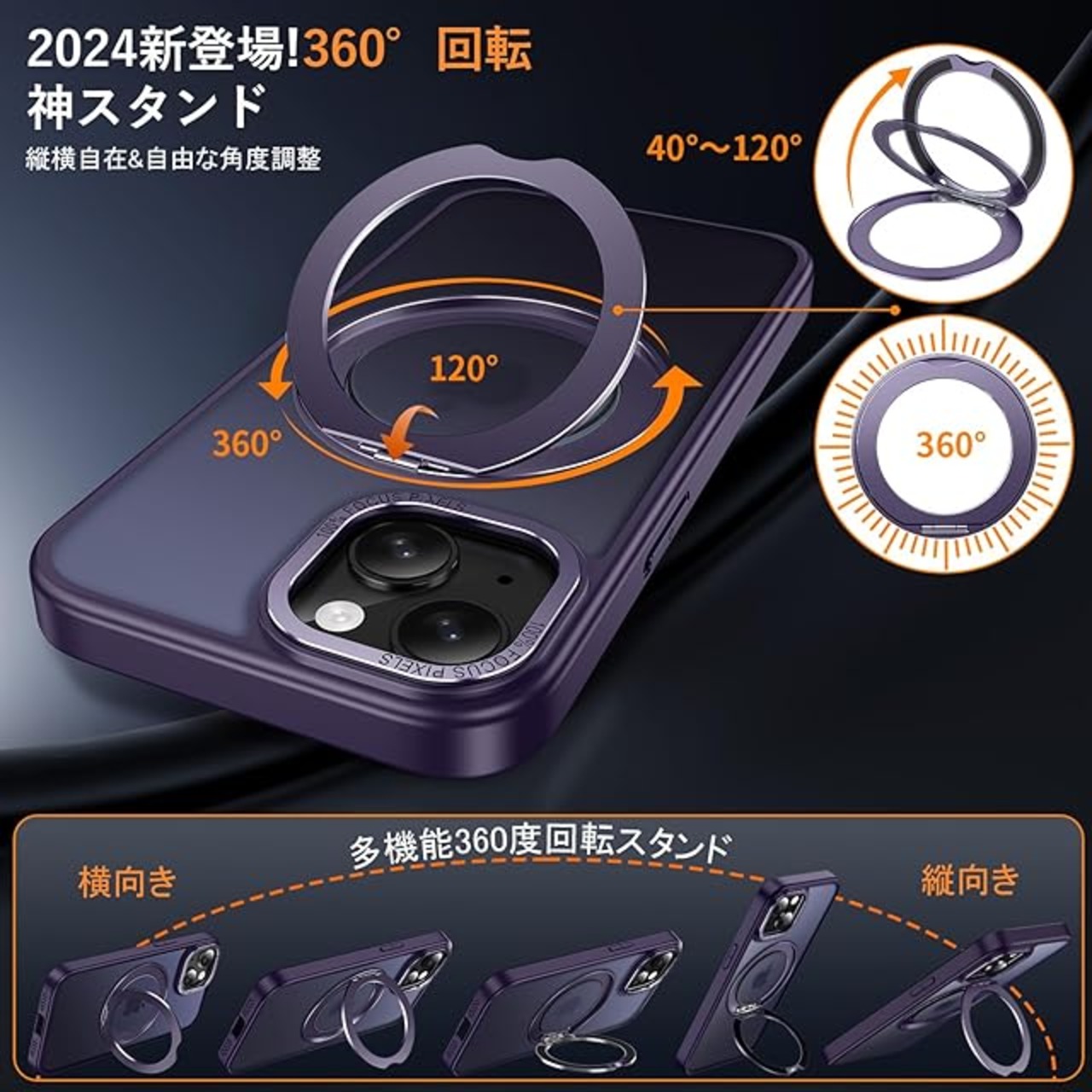 【多機能360度!縦も横も思いのまま!】:背面に搭載された嵌め込み式リングは、安定したアルミ合金製の円形スタンドを採用しており、従来のリングと比較して滑りにくく、安定したグリップを提供します。360°回転スタンド機能により、縦置き・横置きどちらの状態でも安定して利用でき、0°~ 120°の間で多角度自由に調整できます。動画視聴やFaceTimeを利用する際には、両手を解放し。外出先でも手軽に使用でき、リングやスタンドを持ち歩く必要がない。ケースを開けるだけでスタンドの完成!指にかければリングも便利に使用でき!ケースを閉じれば背面はスマートに平坦に。無限の使い方が可能で、機能性を重視する方にはぜひ手に取ってみてください!【 iphone 14/13 用 ケース アイフォン14/13 用 ケース アイホン14/13 用ケース】