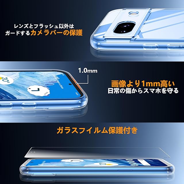 商品名:Google Pixel 8a ケース クリア 黄変防止 グーグルピクセル8a用 耐衝撃 ガラスフイルム保護付き 指紋防止 落下防止 耐久性 ストラップホール付 薄型 軽量 ソフトカバー ワイヤレス充電対応 googleピクセル8a 用 XIWXI