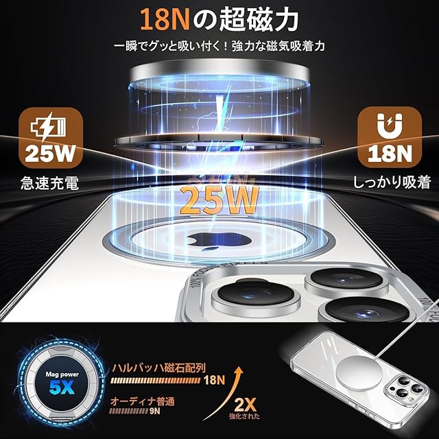【MagSafe対応・磁力アップグレード】:強力なN52磁石を搭載しており、磁石吸着力は従来より10倍高め、ケースを装着したまま高速ワイヤレス充電が可能です、充電時の熱を周囲に発散して。Magsafe充電がかつてないほど簡単にできます!強い磁力により車運転中の激しい振動でもMagsafe車載ホルダーから外れることなく、市販のあらゆるMagsafeアクセサリーに簡単対応!いくら振っても落ちないので、充電しながらゲームをやっても問題なし!【 iphone 16 Pro Max 用 ケース アイフォン16Pro Max 用 ケース アイホン16プロマックス 用ケース
