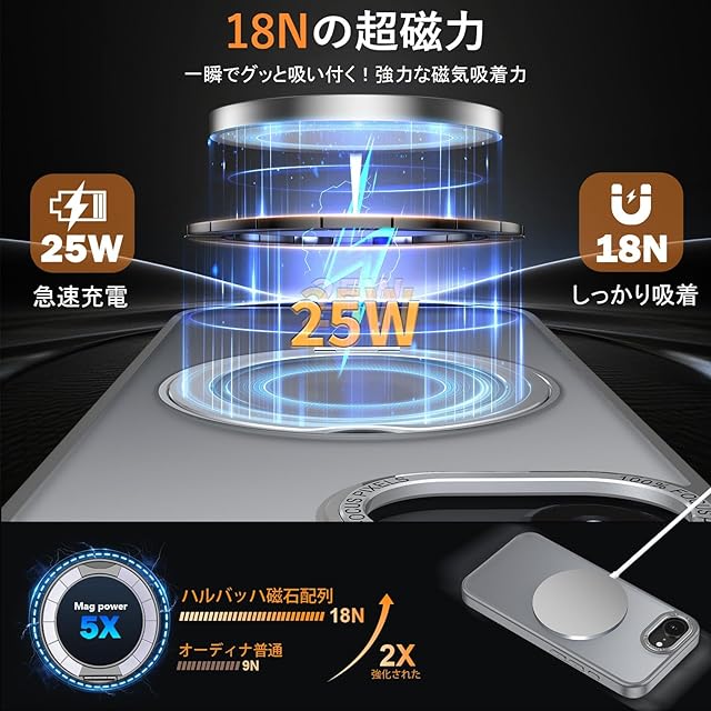 【MagSafe対応・磁力アップグレード】:強力なN52磁石を搭載しており、磁石吸着力は従来より10倍高め、ケースを装着したまま高速ワイヤレス充電が可能です、充電時の熱を周囲に発散して。Magsafe充電がかつてないほど簡単にできます!強い磁力により車運転中の激しい振動でもMagsafe車載ホルダーから外れることなく、市販のあらゆるMagsafeアクセサリーに簡単対応!いくら振っても落ちないので、充電しながらゲームをやっても問題なし!【iPhone 16e 用 ケース アイフォン16e 用 ケース アイホン16e用ケース】