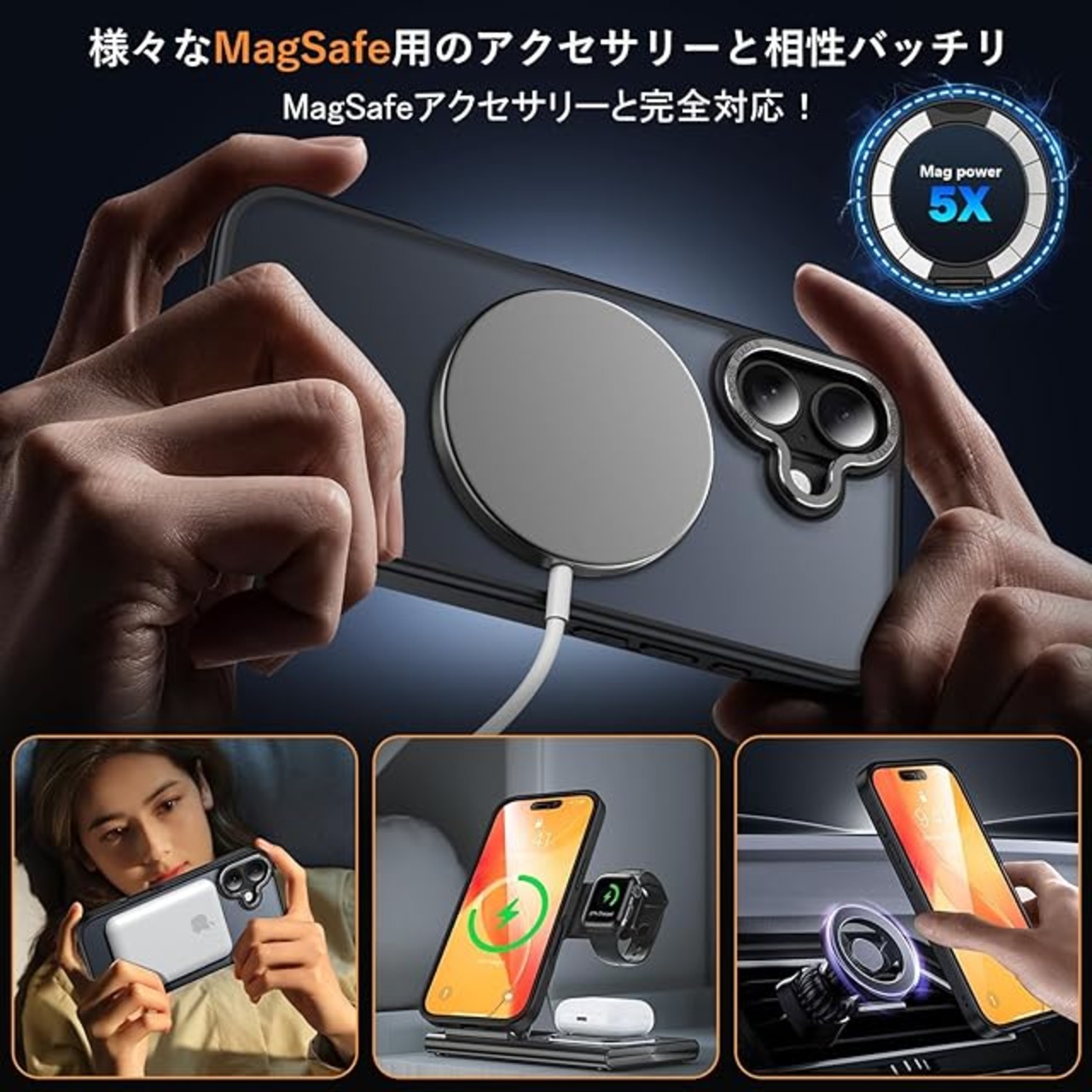 【MagSafe対応・磁力アップグレード】:強力なN52磁石を搭載しており、磁石吸着力は従来より10倍高め、ケースを装着したまま高速ワイヤレス充電が可能です、充電時の熱を周囲に発散して。Magsafe充電がかつてないほど簡単にできます!強い磁力により車運転中の激しい振動でもMagsafe車載ホルダーから外れることなく、市販のあらゆるMagsafeアクセサリーに簡単対応!いくら振っても落ちないので、充電しながらゲームをやっても問題なし!【iPhone 17 用 ケース あいふぉん 17 用 ケース アイホン 17 用ケース】