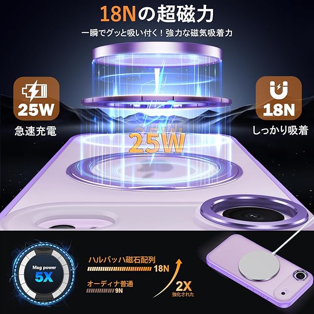 【MagSafe対応・磁力アップグレード】:強力なN52磁石を搭載しており、磁石吸着力は従来より10倍高め、ケースを装着したまま高速ワイヤレス充電が可能です、充電時の熱を周囲に発散して。Magsafe充電がかつてないほど簡単にできます!強い磁力により車運転中の激しい振動でもMagsafe車載ホルダーから外れることなく、市販のあらゆるMagsafeアクセサリーに簡単対応!いくら振っても落ちないので、充電しながらゲームをやっても問題なし!【iPhone Air 用 ケース あいふぉん 17 Air 用 ケース アイホン 17 エア 用ケース】