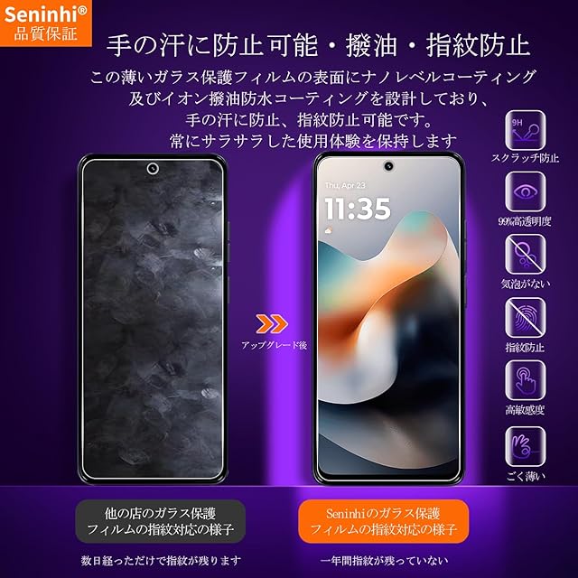 ☞【専用設計】MOTO G66J 5G / G66Y 5G 専用に設計した保護フィルムなので、必ずご購入前にお使いの携帯電話の機種をご確認ください。(お買い得な4点セット)液晶保護フィルム*2枚+レンズ保護フィルム*2枚の組み合わせ、1度のご購入で、携帯電話の保護フィルムとカメラ保護フィルムが入っております。【正規品】Seninhi ブランドは 10 年間携帯電話保護フィルムの製造しており、最高品質の保護フィルムを生産することを約束します。市販の高価な保護フィルムと同じですが、価格がもっと安いので、お客様に大変ご愛顧いただき、月間販売数は20,000枚を超えました。弊社の製品は購入価値があります。安心して当社の製品をお買い求めください。