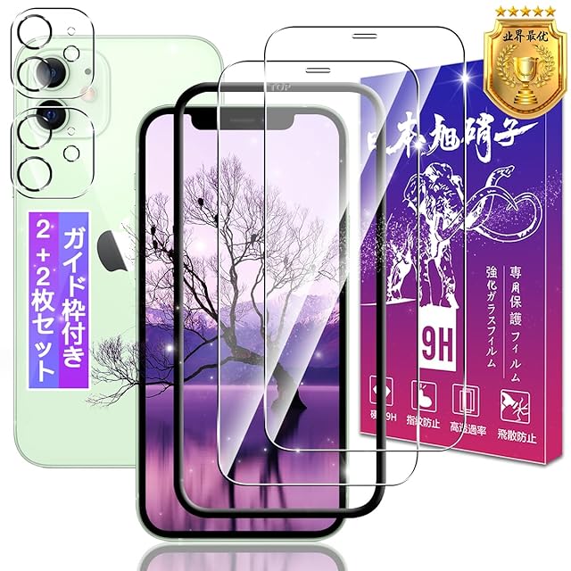 商品名:【2+2枚セット】対応 iPhone 12 mini ガラスフィルム 2枚 + iPhone12 mini レンズ保護フィルム 2枚【ガイド枠付き 日本製素材旭硝子製】表面硬度9H 対応 アイフォン 12 ミニ 5.4インチ 強化ガラス フィルム いphone12 ミニ 用 保護フィルム 高透過率 飛散防止 高感度タッチ 気泡防止 耐指紋 ラウンドエッジ加工 簡単貼り付け FAMROLLS正規品